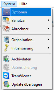 Die Optionen werden über den Menüpunkt System und dem Untermenü Optionen geöffnet.