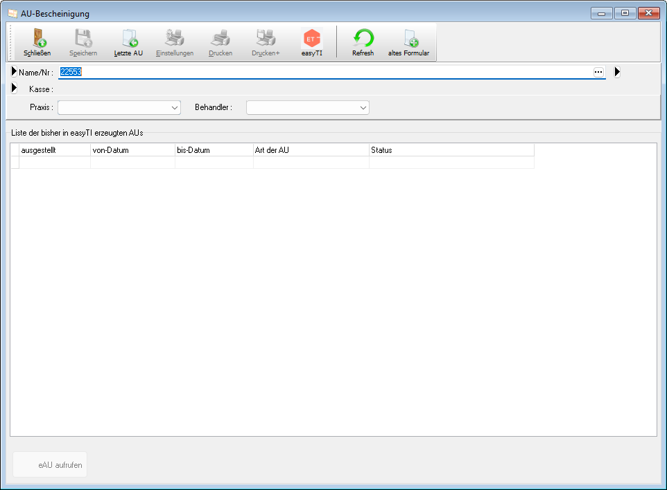 Das Fenster zur Erstellung einer Arbeitsunfähigkeitsbescheinigung öffnet sich.