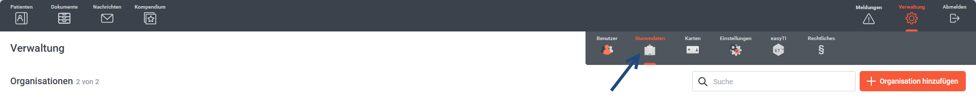 Im nächsten Schritt erfassen Sie Ihre Praxisdaten unter der Rubrik "Stammdaten".