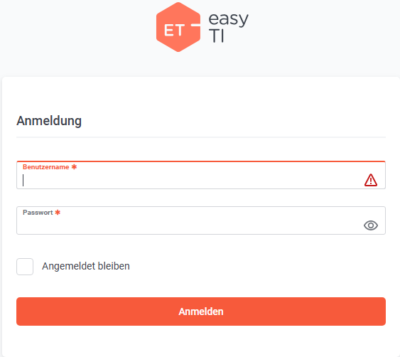 Die Anwendung easyTI wird in Ihrem Browser geöffnet, melden Sie sich mit Ihren Benutzerdaten an.