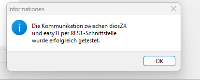 Wenn der Aufruf erfolgreich war, erhalten Sie eine Information in diosZX.