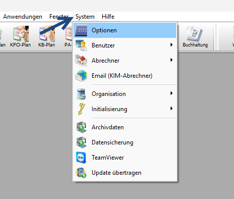 Rufen Sie die Einstellungen in diosZX auf über den Menüpunkt System, Untermenü Optionen.