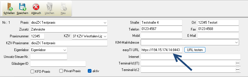 Tragen Sie im Feld "easyTI URL" die korrekte URL für den Aufruf von easyTI ein.