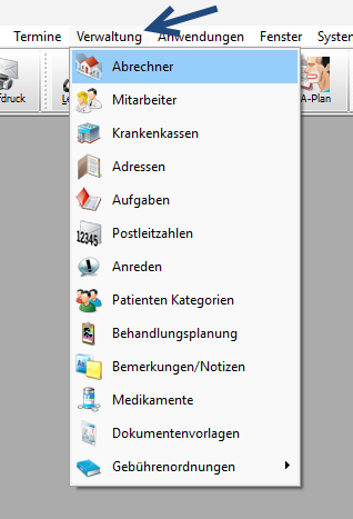 Rufen Sie hierzu den Menüpunkt Verwaltung und das Untermenü Abrechner auf.